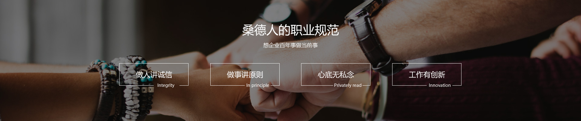 大家都是桑德人,岗位虽有分别,工作却无界限。每个人都心系全局,每个人都高效率地支持所有同事,纯朴心田里有一朴素观念:一切从工作出发。我为人人服务,人人是我客户。