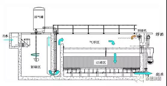 气浮滤池是溶气浮选池与多介质滤池相结合的一种新型工艺。气浮滤池上部为溶气浮池,下部为多介质滤池。应用于海水淡化预处理,原水水质较差的给水厂,含油污水深度处理以及中水回用前进行双模预处理。公司掌握DAFF核心技术,其核心技术人员负责实施多项重点工程,已在中石化、中石油等都应用了DAFF技术,并取得了满意的效果。